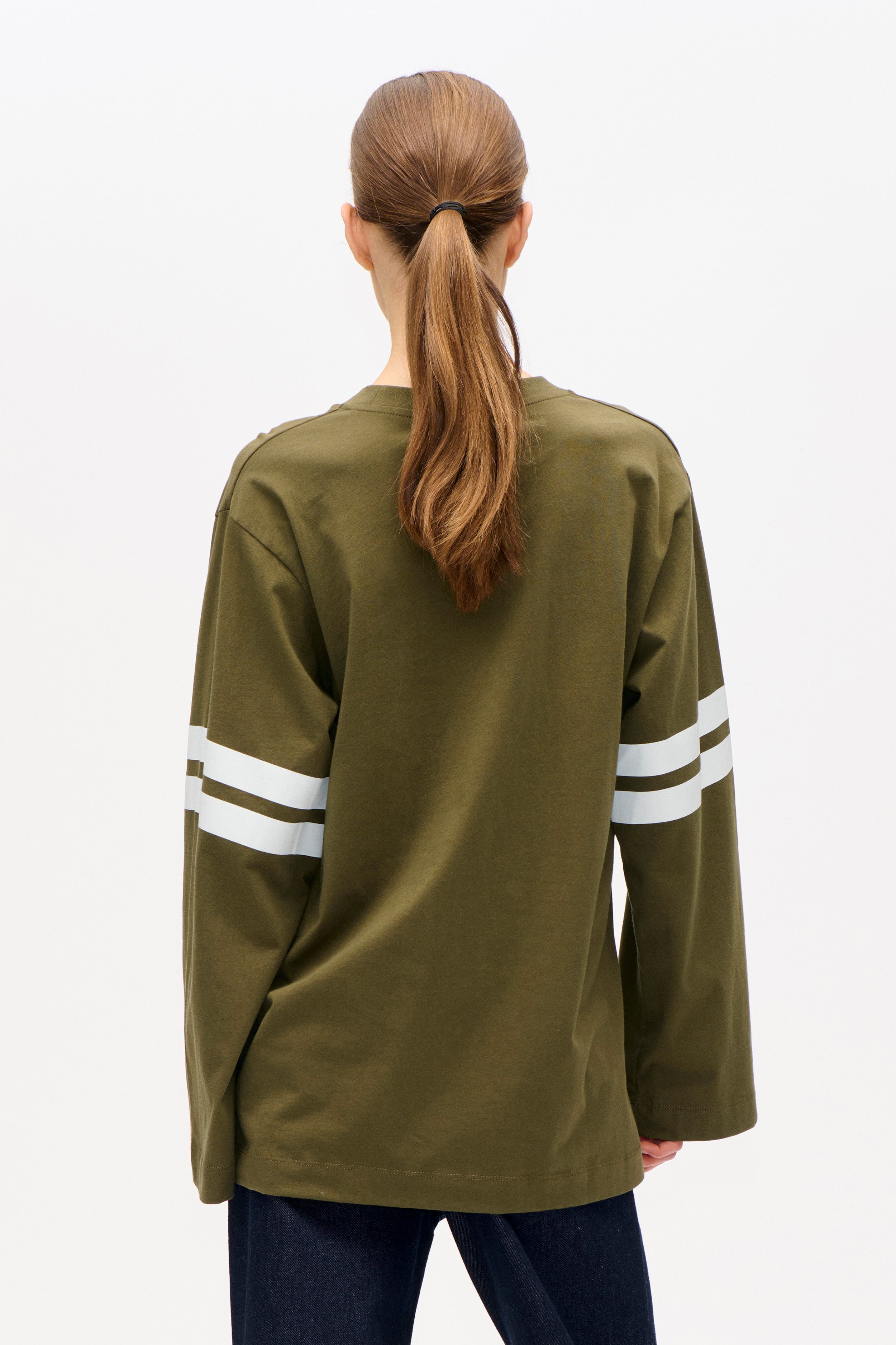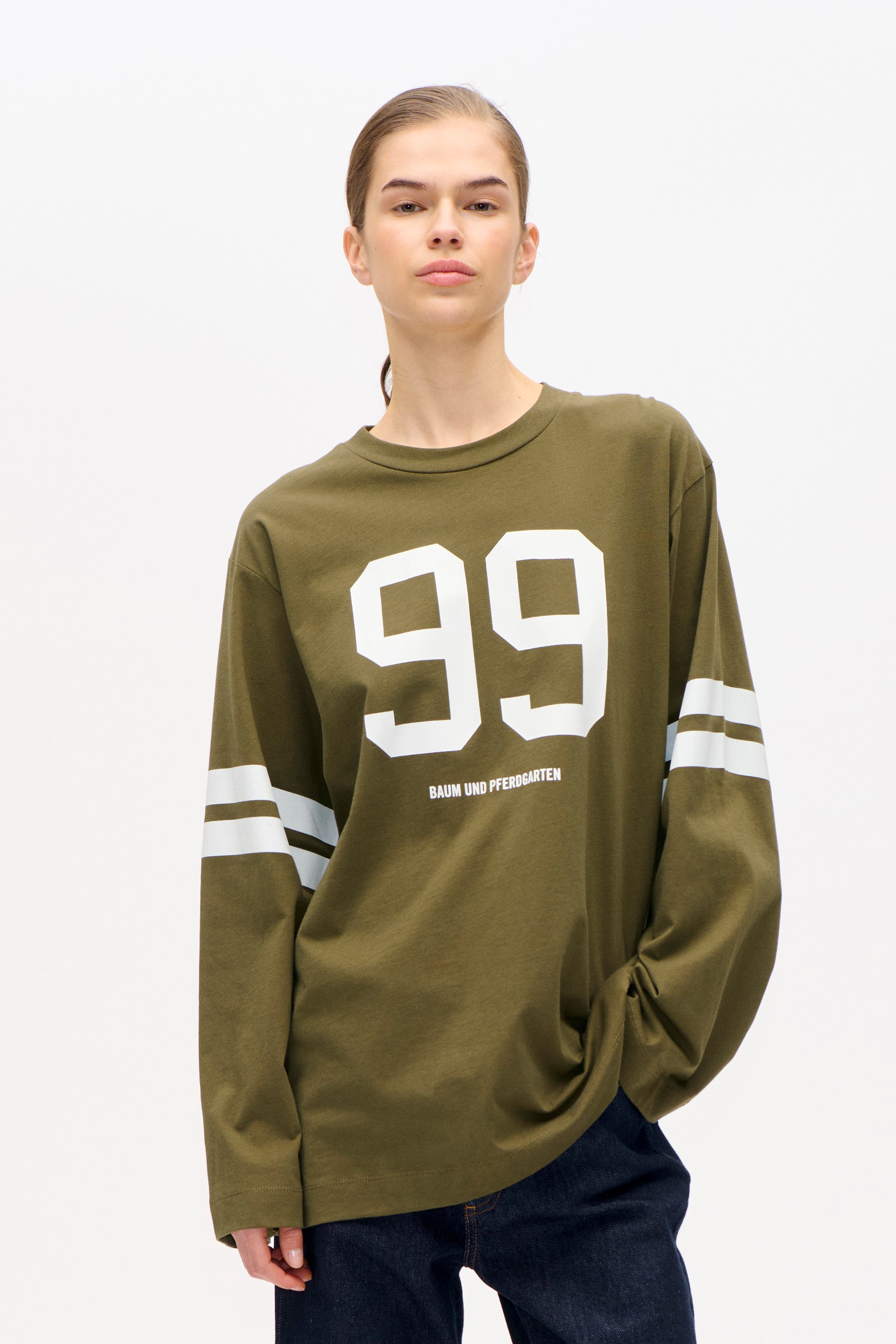 Jeevana shirt in de kleur 'Ivy Green' van het Deense merk Baum und Pferdgarten. Heerlijk bio katoenen shirt met opgedrukte print. Het heeft een ronde hals en lange uitlopende mouwen. Dit is het perfect shirt om jouw look een casual, sportief randje te geven.