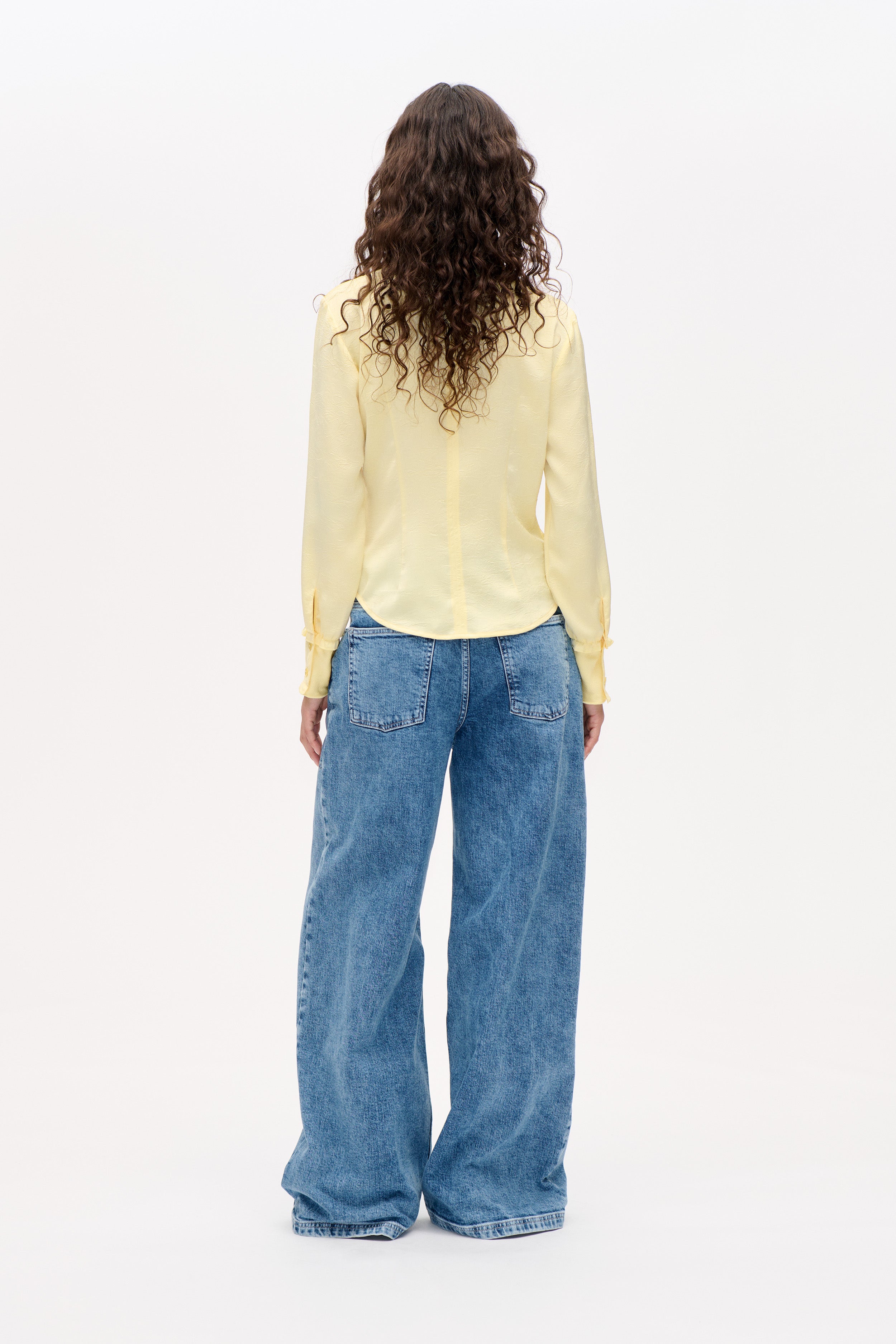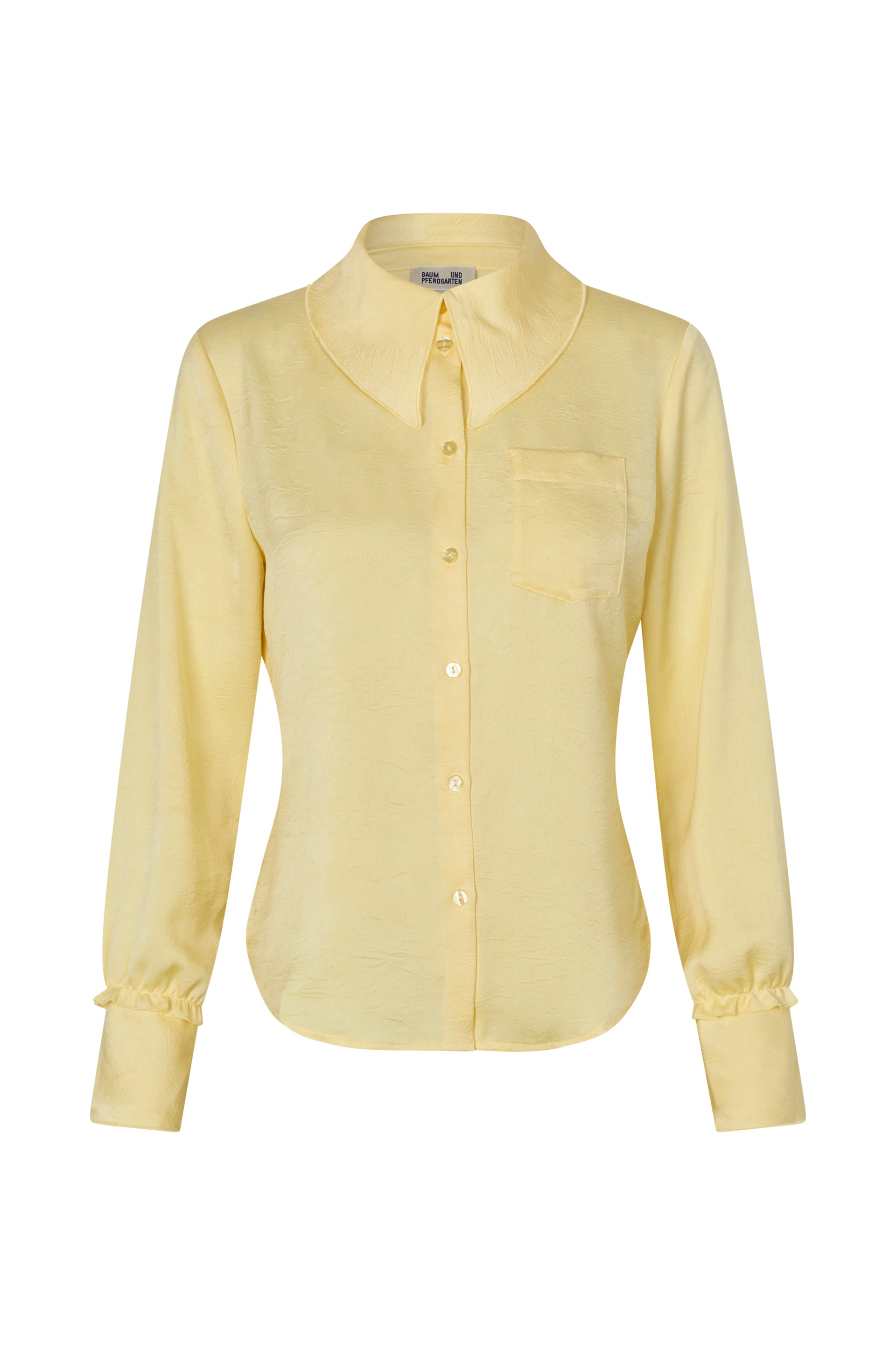 Melle Blouse in de mooie kleur French Vanilla van het modehuis Baum und Pferdgarten. Leuk overhemdblouse met manchetten en een grote kraag.
