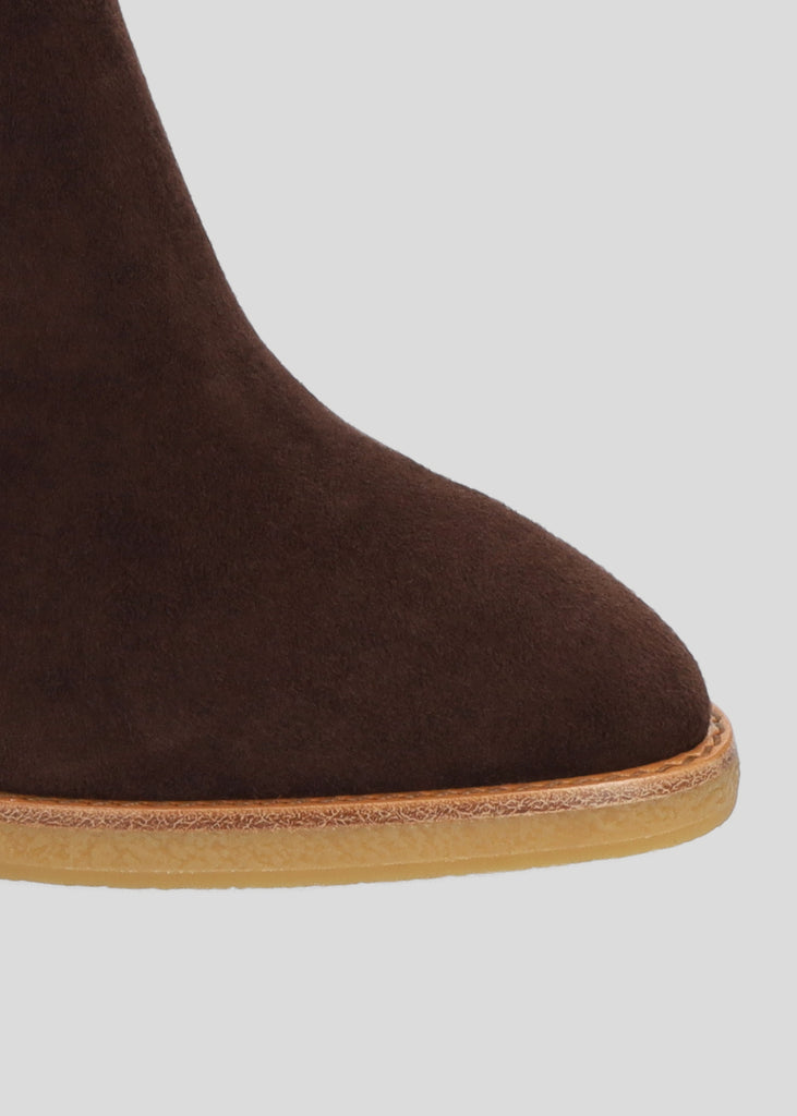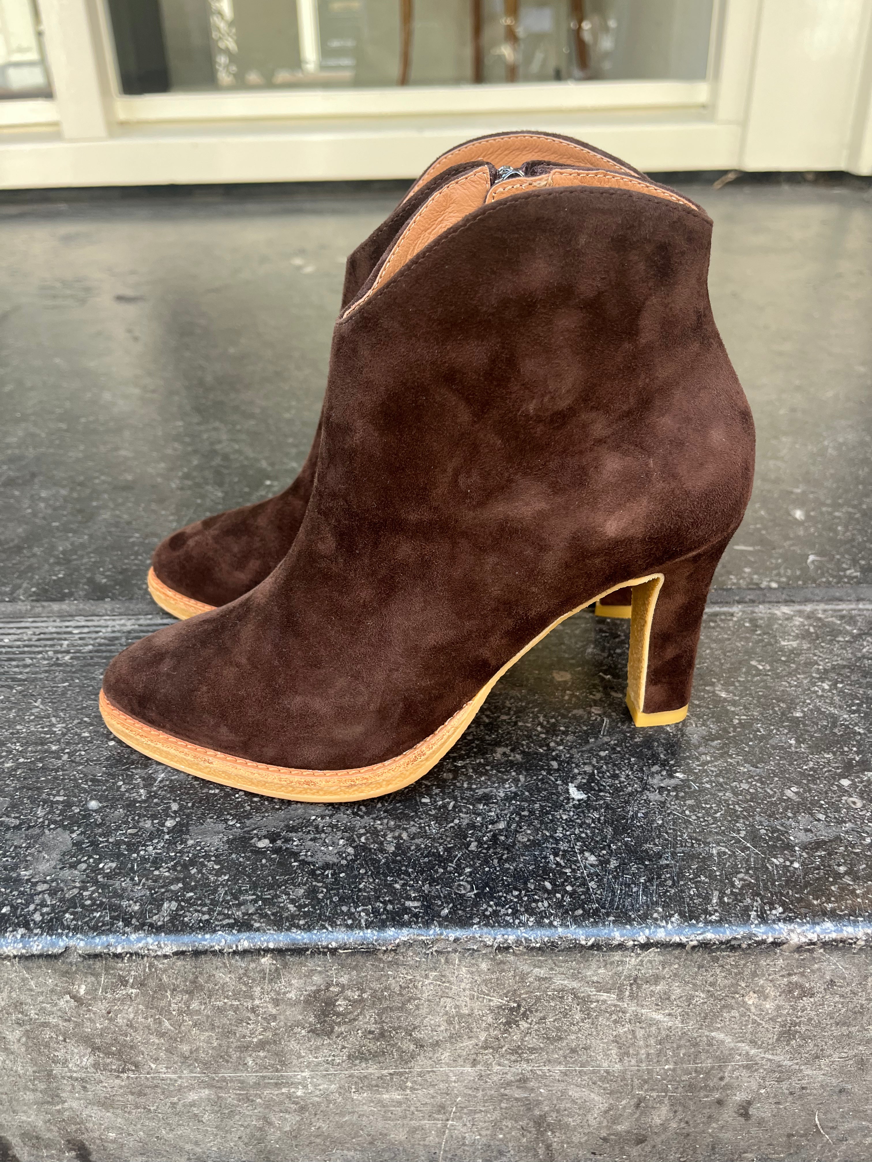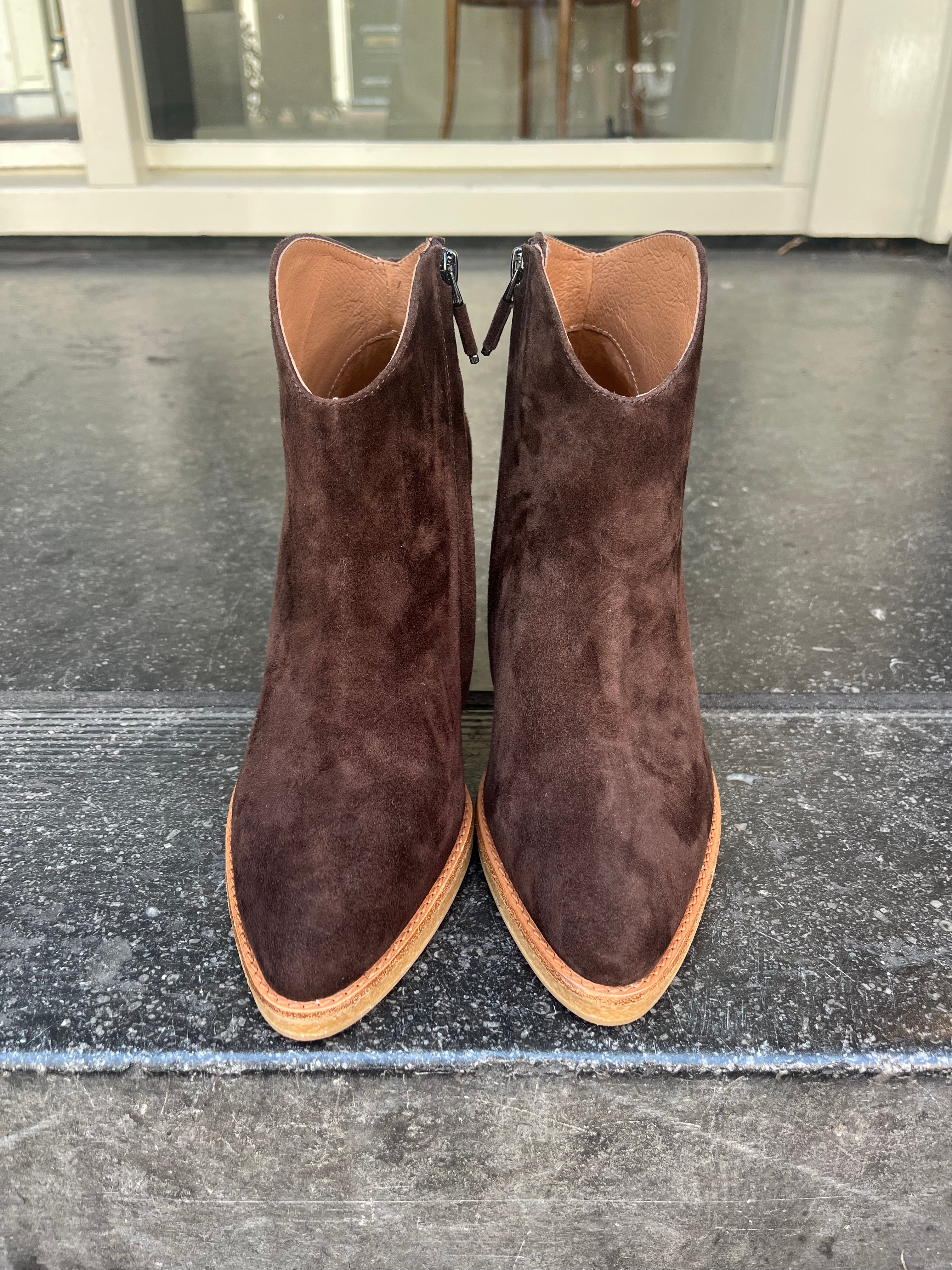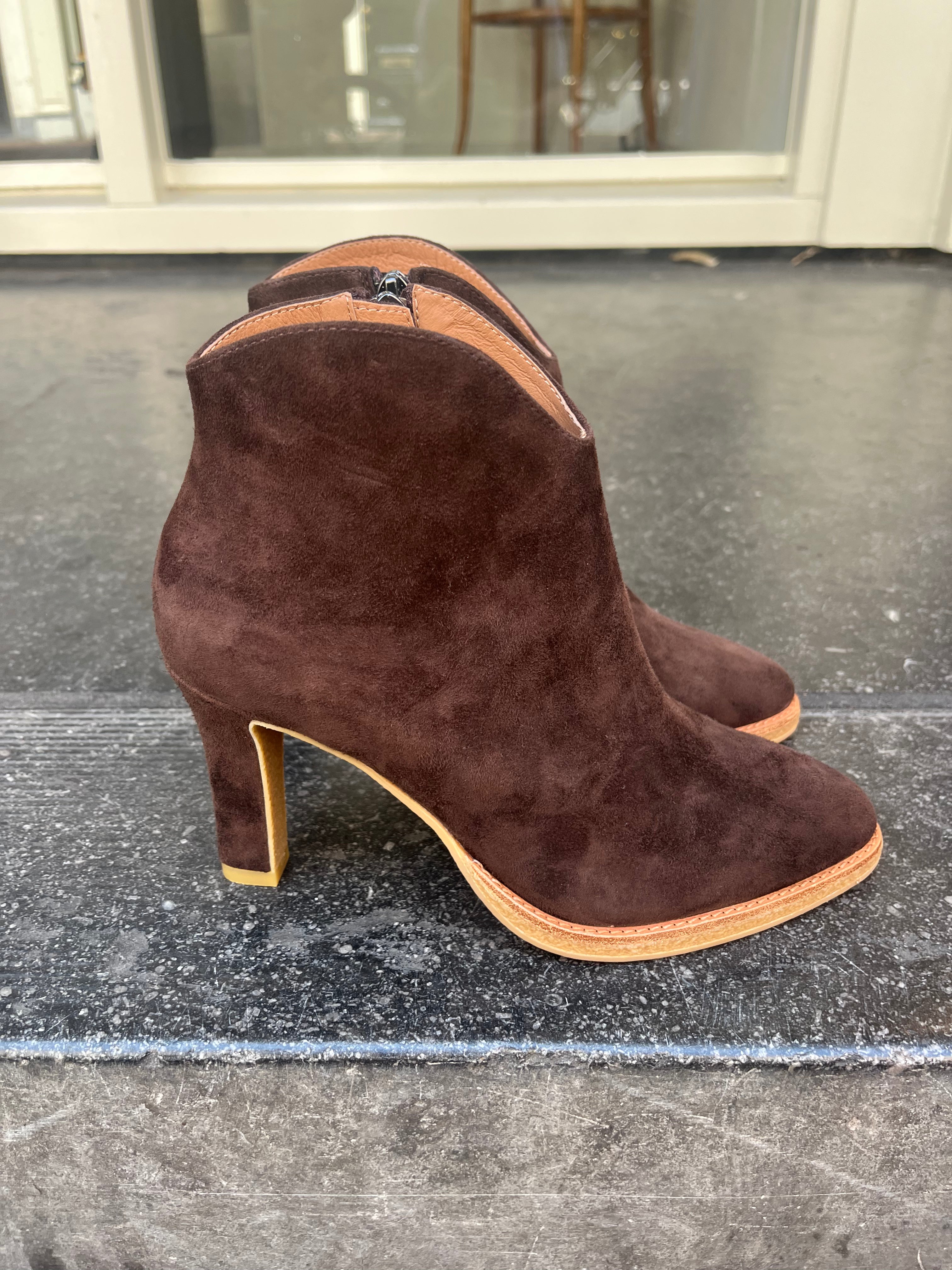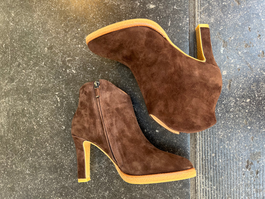 Boots van het Spaanse merk Lola Cruz in de kleur 'Brown'. Dit zijn onze bestsellers maar in een vernieuwd jasje! De laarsjes zijn van binnen en van buiten gemaakt van leer en suède. De neus van de schoen loopt in een punt. De latex zool zorgt ervoor dat de laarsjes comfortabel lopen. Aan de zijkant zit een rits. De laarsjes zijn ook verkrijgbaar in de kleur 'Taupe' binnenkort. De hakhoogte is 9 cm.