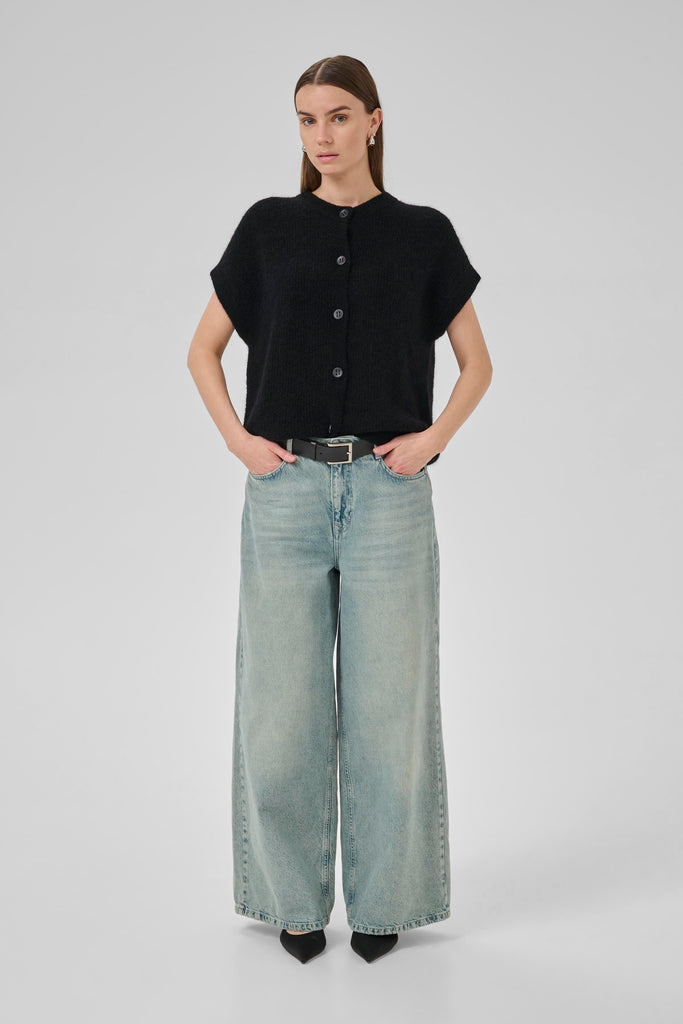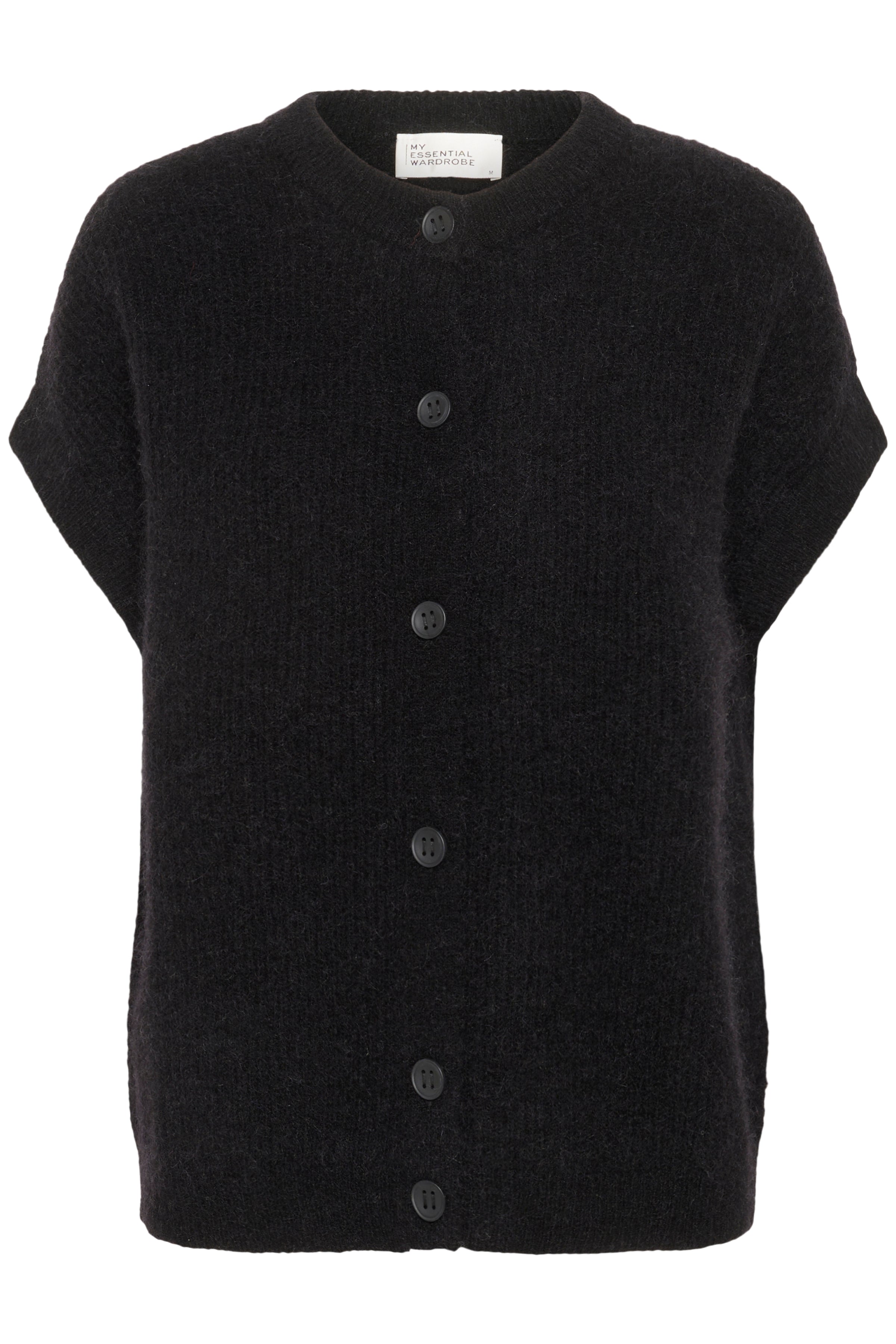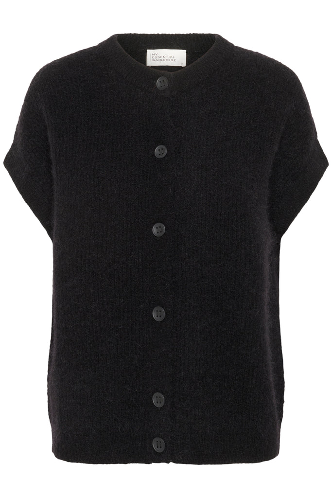 SivaMW OS Knit Cardigan in de kleur 'Black' van het Deense merk My Essential Wardrobe. Dit damesvest in een losjes vallend model heeft een ronde hals en knoopsluiting voor. Ideaal voor laagjes en dagelijks gebruik met comfortabele pasvorm.