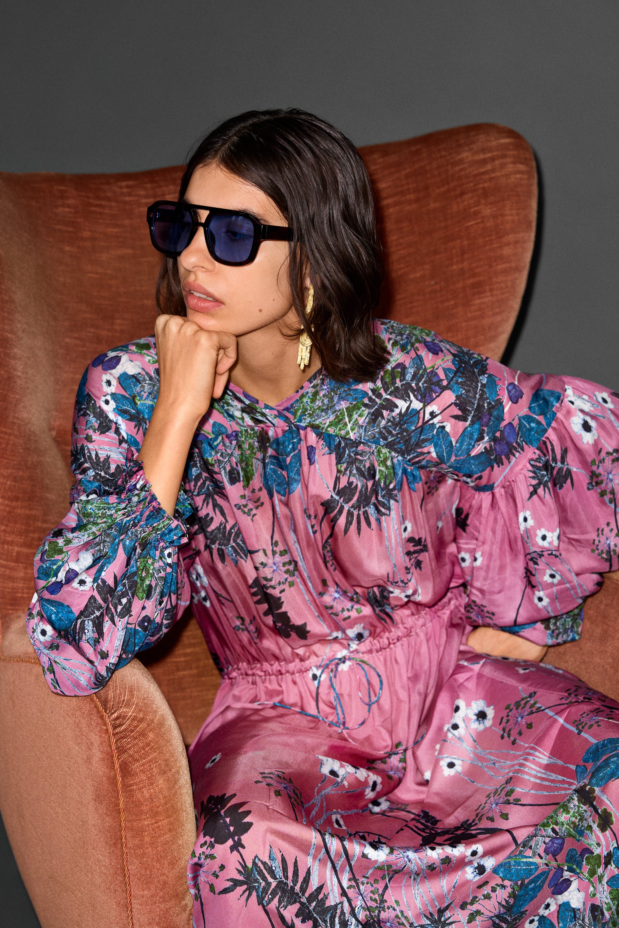 Het model is 175 cm lang en draagt maat 36.