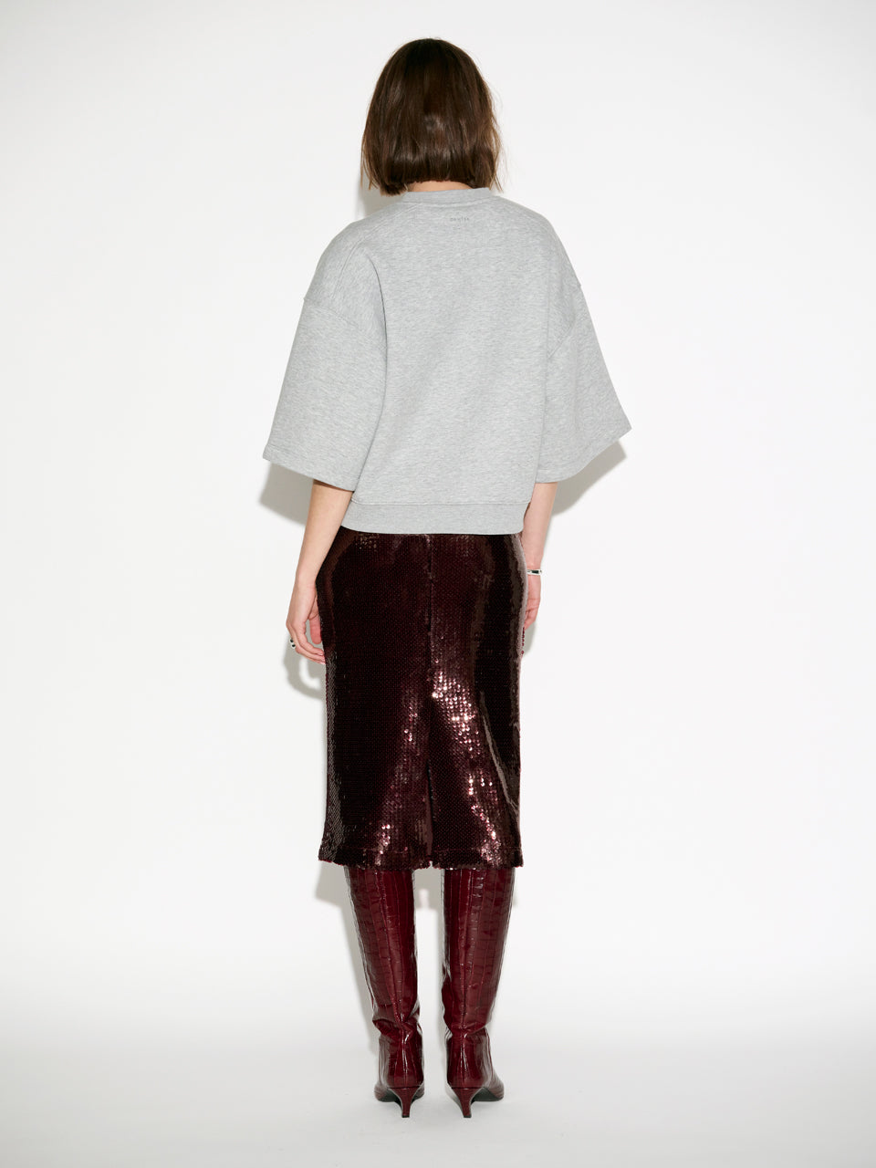 De Fallon sweater in Heather Grey is een eigentijdse variant op de klassieke sweater. Gemaakt van een heavy-washed jersey van biologisch katoen met kimono-geïnspireerde mouwen. De boxy cropped pasvorm en het DANTE6-logo op de borst maken dit een stijlvol en comfortabel item.