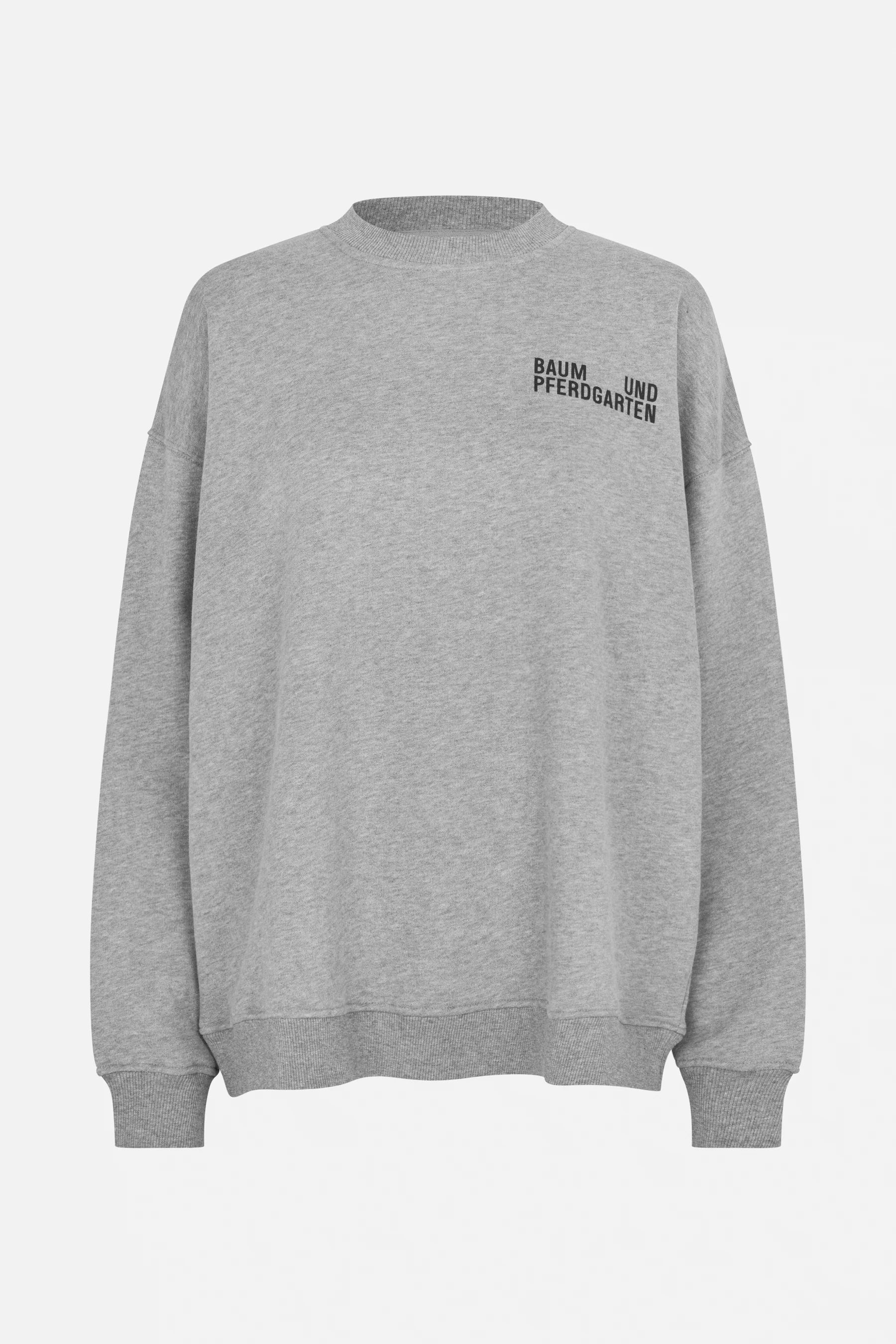 Julle Sweater in de kleur 'Grey Melange' van het Deense merk Baum und Pferdgarten. Heerlijke katoenen sweater met een zachte binnenkant. Leuk oversized model met verlaagde schouders.