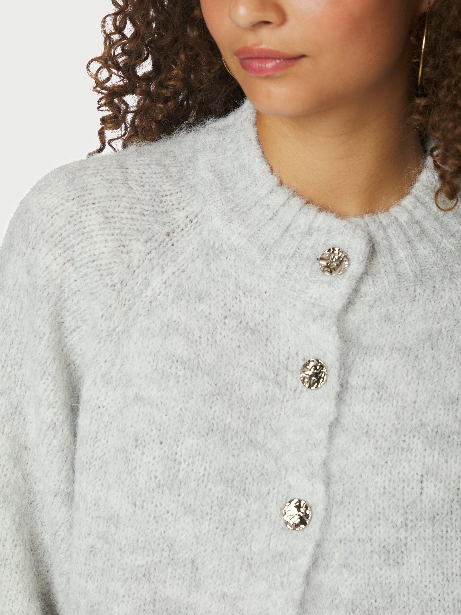 Benuta Fluffy Knit Cardigan - Light Grey Melange