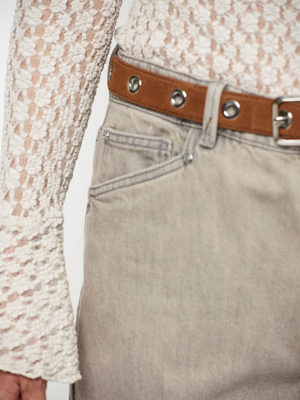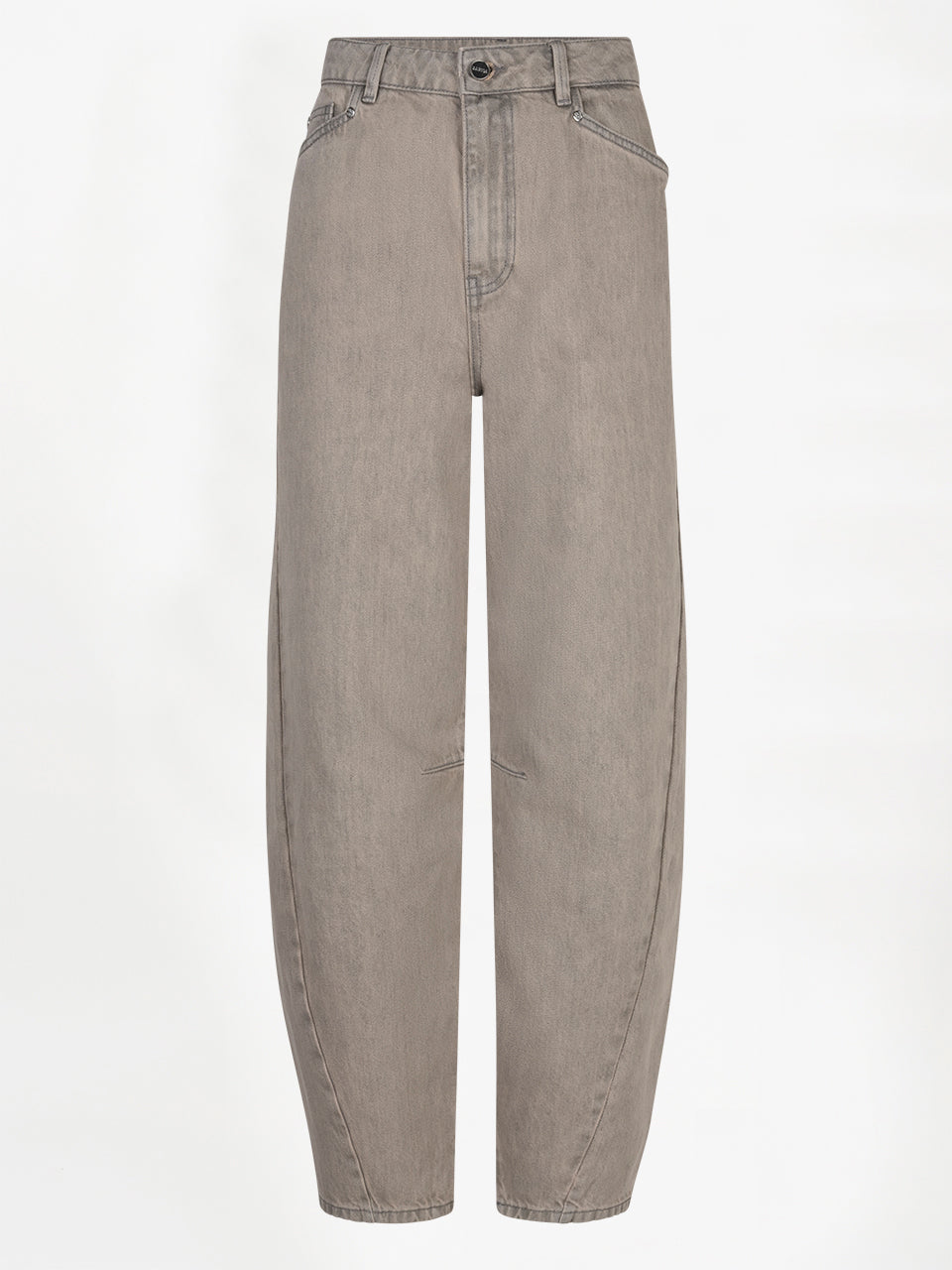 De Brave barrel jeans van Dante6 in de kleur 'Greige Overdye' is gemaakt van zacht, gewassen denim van biologisch katoen. De diagonale naad langs de pijpen zorgt voor een relaxed silhouet met een moderne uitstraling.