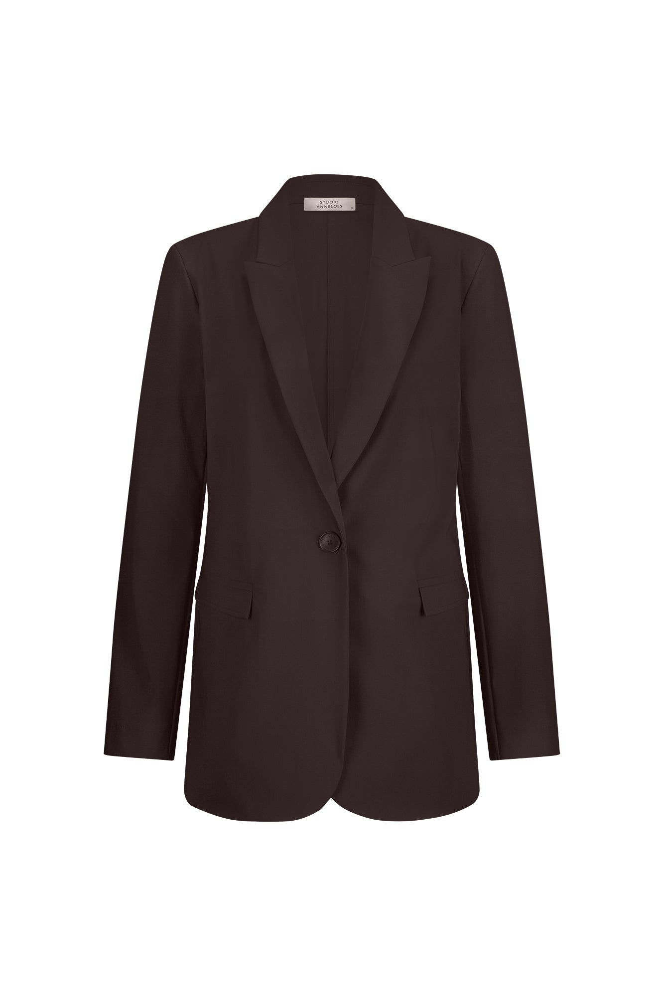 De Fran blazer van Studio Anneloes is gemaakt van travel kwaliteit en kreukt niet. Het is een boyfriend blazer met klepzakken die naar binnen gevouwen kunnen worden. Deze blazer heeft subtiele schoudervullingen en ietwat wijde mouwen met knopen. Het is een wat langer model en is een beetje getailleerd. We adviseren om jouw normale maat te bestellen.