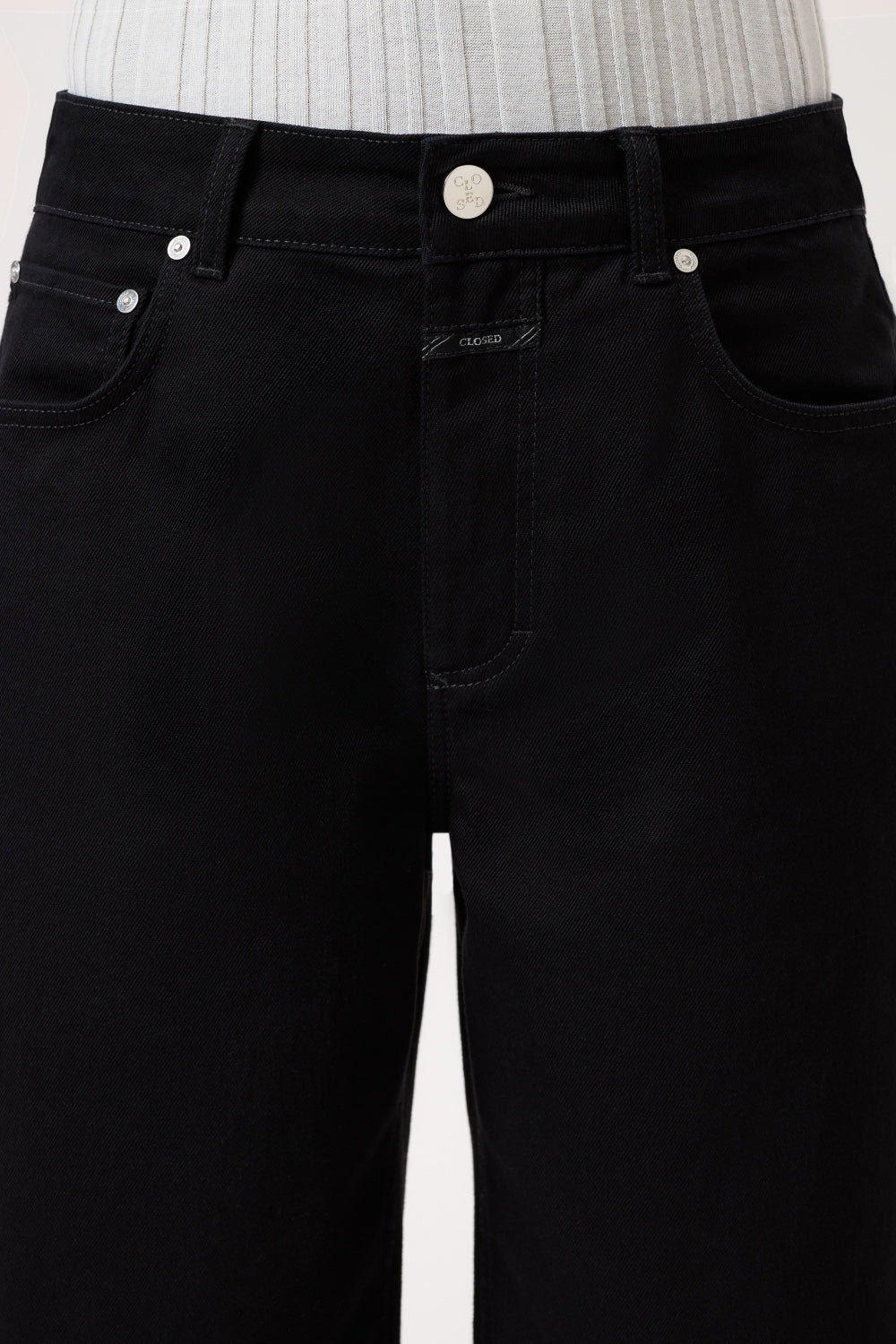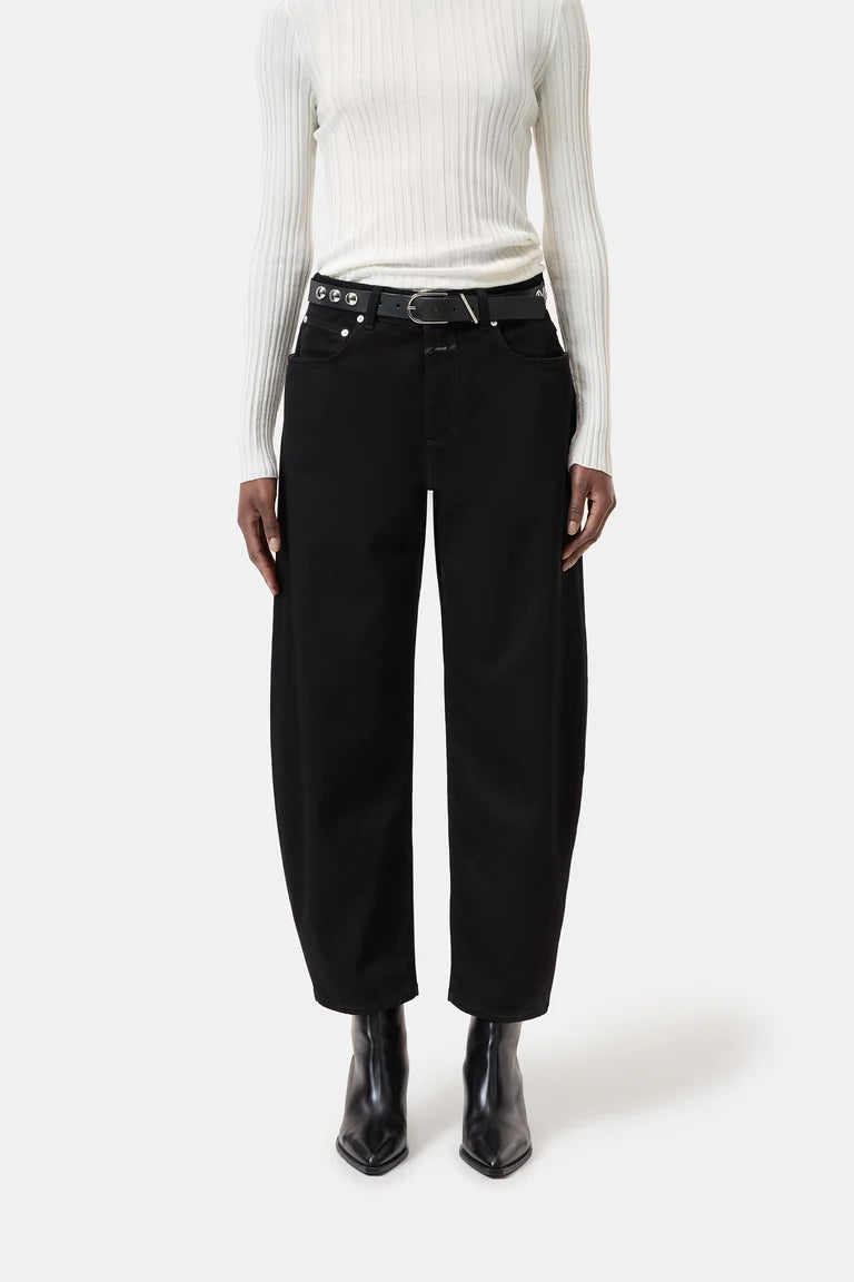 De Jazzie Jeans van Closed in een mooie diepe zwarte wassing. Deze denim heeft een relaxte, moderne barrel fit met een middelhoge taille en een cropped lengte. Gemaakt in Italië van de mooiste denim. Combineer met een lage sneaker of loafer voor een casual look of maak de jeans juist chique met een laarsje!