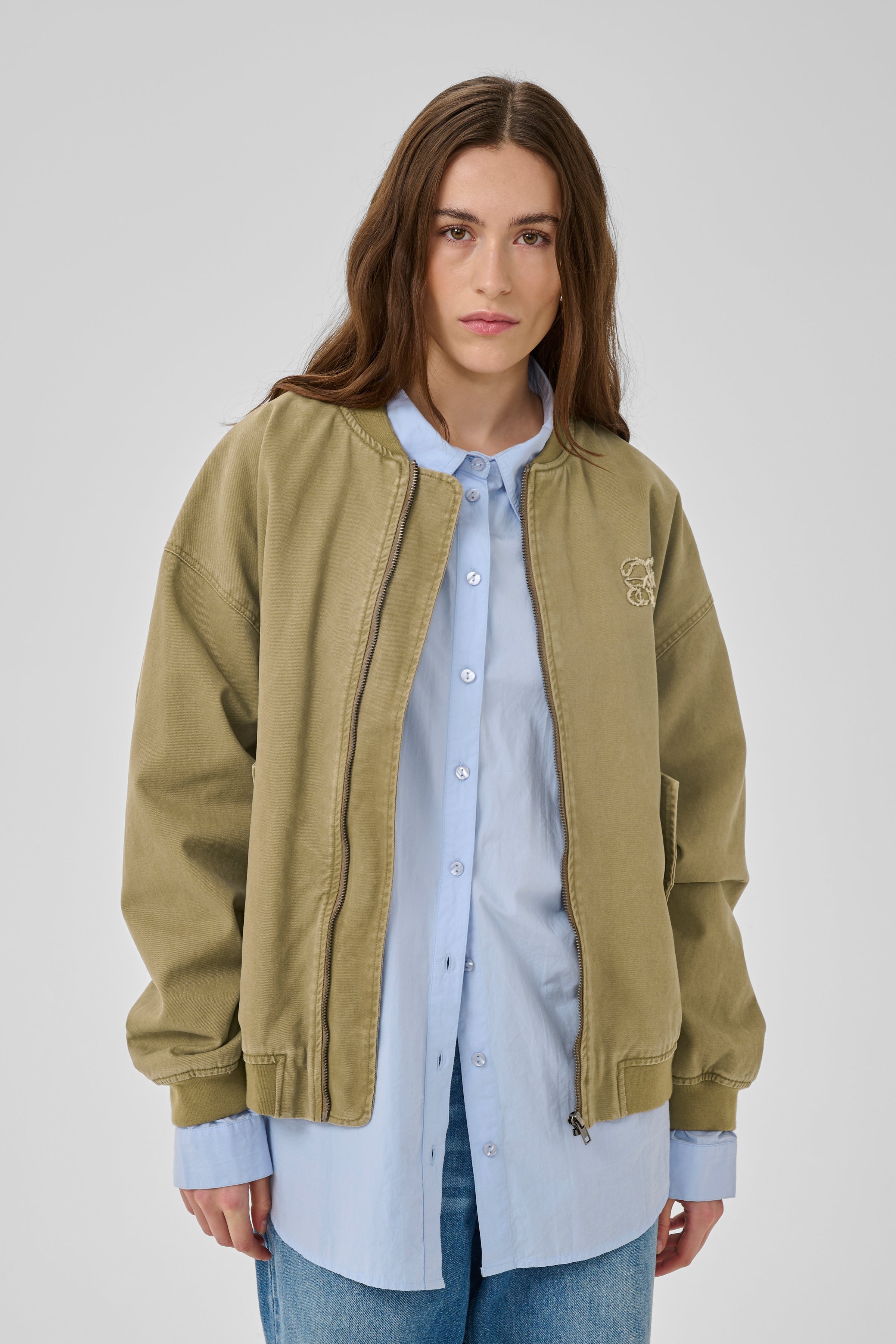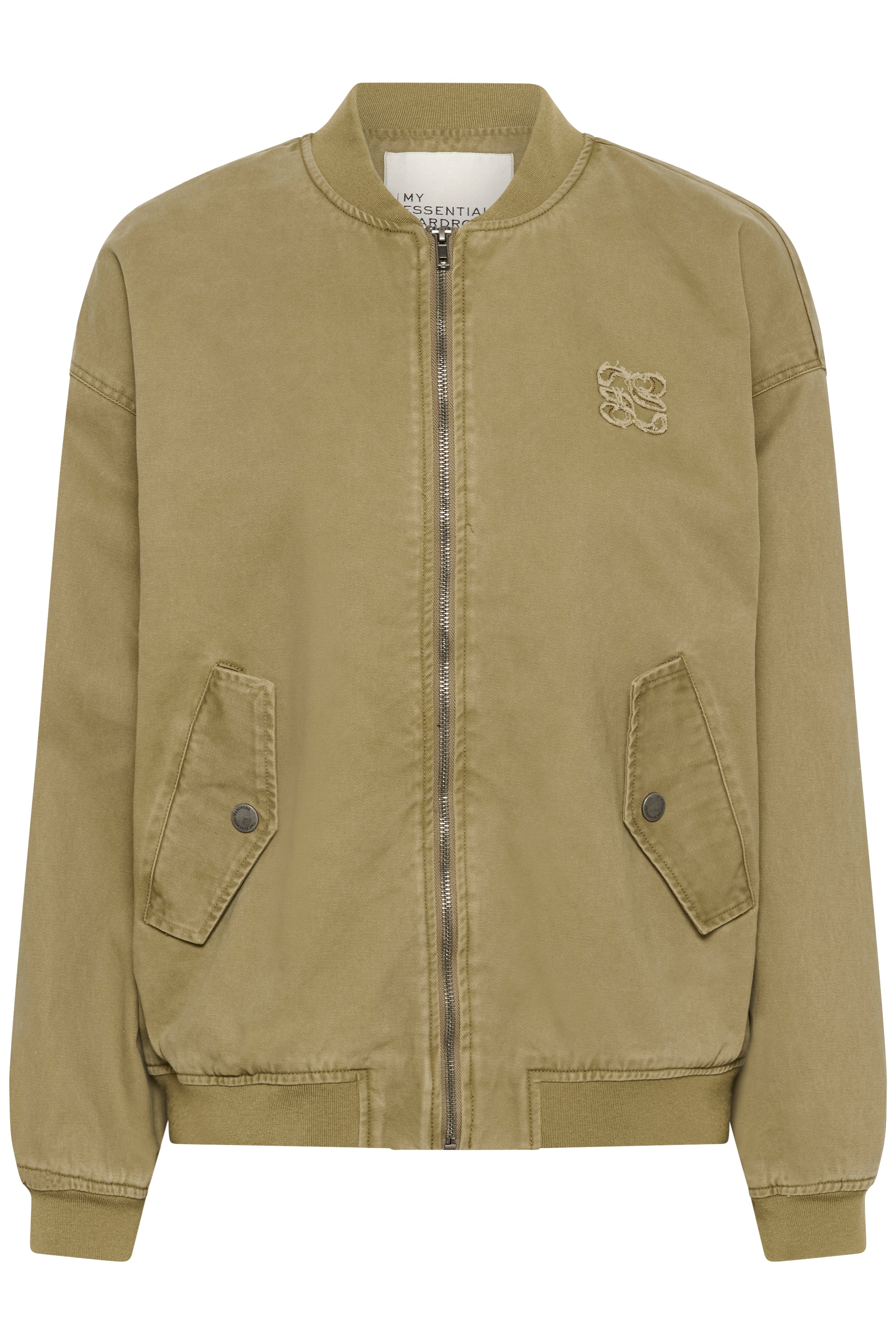 MWLisva 179 Bomber Jacket in de kleur Light Capers Was van het Deense merk My Essential Wardrobe. Dit bomberjack heeft een relaxed fit en cropped lengte, ideaal voor gelaagde looks. Ribboorden en een verborgen sluiting bieden moderne stijl en comfort.